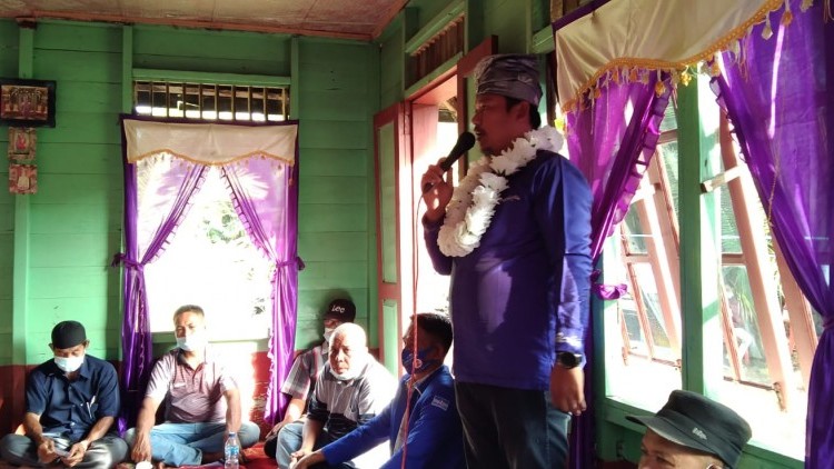 Hery Saputra SH yang berpasangan dengan Muhammad Khozin MA dengan nomor urut dua, bersama puluhan simpatisan tetap hadir untuk menyapa pendukungnya yang sudah menunggu di kediaman salah satu tokoh masyarakat Desa Tengayun Raya. Meski kondisi hujan gerimis.