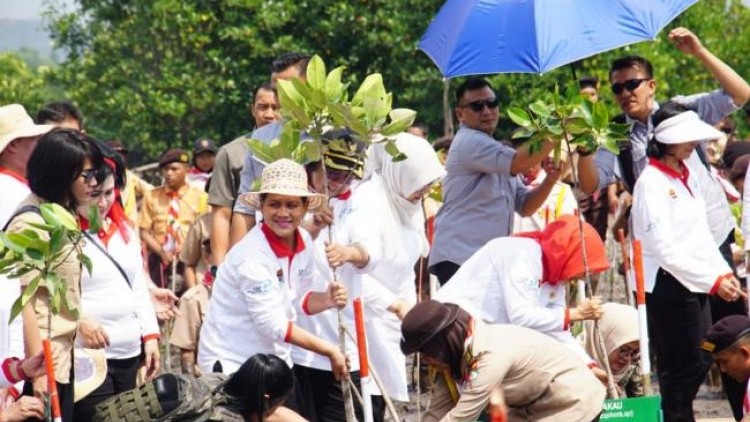 Ibu Negara Terjun Bersama Masyarakat Tanam Mangrove di Pancur Pelabuhan Kota Batam.