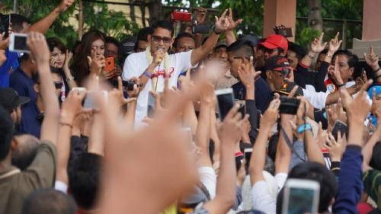 KANALSUMATERA.com - Calon wakil presiden nomor urut 02 Sandiaga Uno melakukan safari politiknya ke Provinsi Banten. Di tanah jawara Sandi meresmikan asrama Pondok Pesantren, ziarah hingga berdialog dengan pembuat emping.