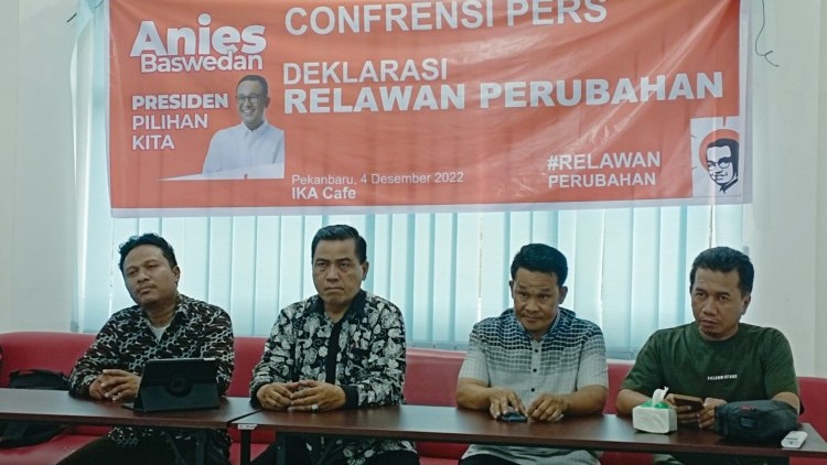 KANALSUMATERA.com - Sebagai langkah konkret dalam upaya mendukung Anies Baswedan sebagai Presiden di Pilpres tahun 2024 mendatang, Relawan Perubahan akan menggelar deklarasi, Senin (5/12) bertempat di salah satu hotel di Pekanbaru.