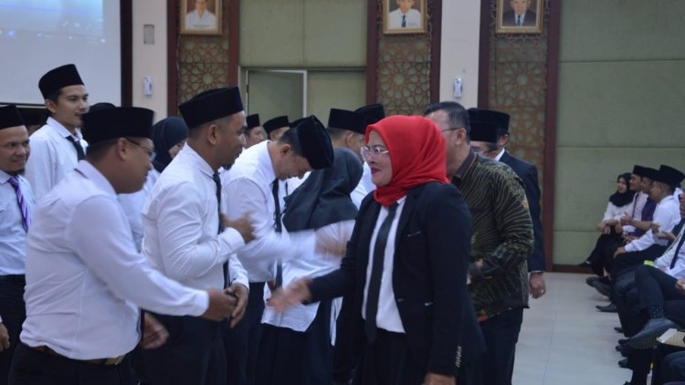 Tampak seluruh PPK yang dinyatakan lolos seleksi beberapa waktu yang lalu tersebut hadir dengan mengenakan pakaian hitam putih.