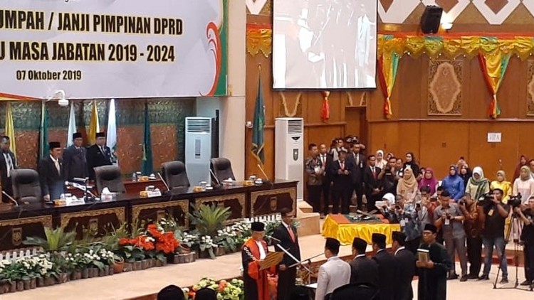 Pengambilan sumpah jabatan ini diucapkan oleh empat pimpinan definitif DPRD Riau periode 2019-2024. Adapun diantaranya yaitu Indra Gunawan Eet (Golkar) sebagai ketua, dan tiga wakilnya yaitu Zukri (PDIP), Asri Auzar (Demokrat), dan Hardianto (Gerindra).
