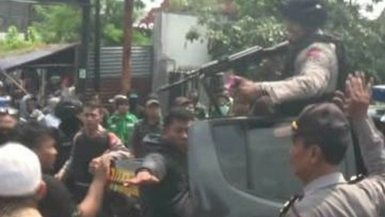 KANALSUMATERA.com - Polisi melepas tembakan peringatan saat terjadi kericuhan di dekat kegiatan kampanye Prabowo di Grand Pacific Hall Sleman, siang tadi. Pemantiknya karena ada dua orang tak dikenal membawa spanduk Jokowi-Ma'ruf di tengah pendukung Prabowo.