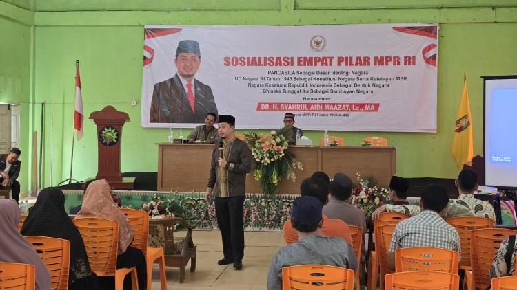 Untuk menguatkan peran da'i dalam menopang emapt pilar MPR RI, anggota MPR/DPR RI Dr. Syahrul Aidi Maazat melakukan sosialisasi empat pilar di hadapan ratusan da'i Kabupaten Kampar yang tergabung dalam Ikatan Da'i Indonesia (IKADI) Kabupaten Kampar. Kegiatan yang dilaksanakan pada Senin (9/2/2026) pagi bertepatan dengan pelantikan pengurus DPD IKADI Kabupaten Kampar.